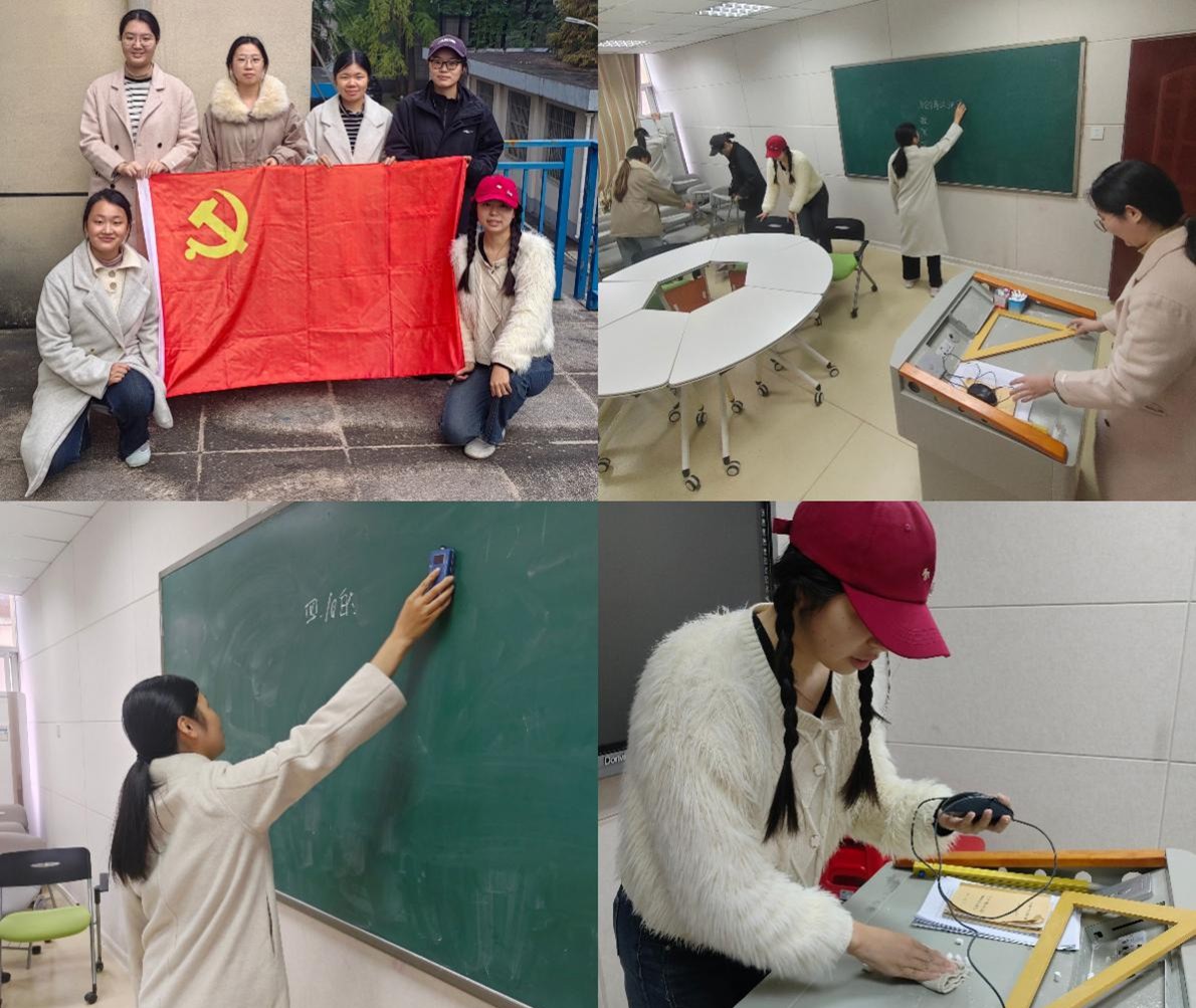 在劳动过程中,志愿者们展现出高度的组织纪律性与协作精神。大家对地面进行全面清扫,对桌椅、黑板、讲台、门窗、栏杆等设施进行细致擦拭,并对日常保洁中易被忽视的卫生死角进行了重点清理。全体成员各司其职,配合默契,劳动现场秩序井然,氛围积极热烈,充分展现了学院学子良好的精神风貌与务实肯干的劳动态度。经过近一个小时的集中清扫,教七楼的整体环境得到显著改善。教室内部整洁明亮,公共区域干净清爽,教学设施焕然一新。参与活动的志愿者普遍表示,通过此次实践,不仅增强了自身对校园环境的认同感和责任感,也深刻体会到劳动的价值与奉献的意义,今后将继续主动参与各类志愿服务,为和谐校园建设贡献力量。