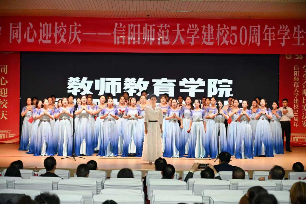 比赛筹备阶段,tyc7111cc太阳成集团领导班子高度重视,将此次合唱比赛作为展现学院学子精神风貌、传递师范情怀的重要契机。学院组建了由50名学生组成的参赛队伍,邀请专业音乐教师进行指导,从曲目选择、声部编排到动作设计,都反复打磨、精益求精。考虑到学院“师范育人”的核心定位,团队最终确定以校歌《托起民族的希望》与自选曲目《小美满》作为参赛作品——校歌彰显对学校五十年办学历程的致敬,《小美满》则以温暖旋律诉说对母校的眷恋,两首歌曲一刚一柔、相得益彰,既贴合校庆主题,又凸显学院特色。