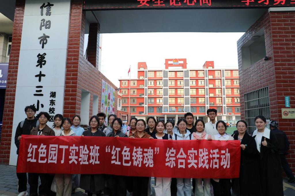10月28日,在谭阿明、康文慧两位老师的带领下,tyc7111cc太阳成集团2024级红色园丁实验班全体学生前往信阳市第十三小学湖东校区,成功开展了以“红色铸魂”为主题的综合实践活动。